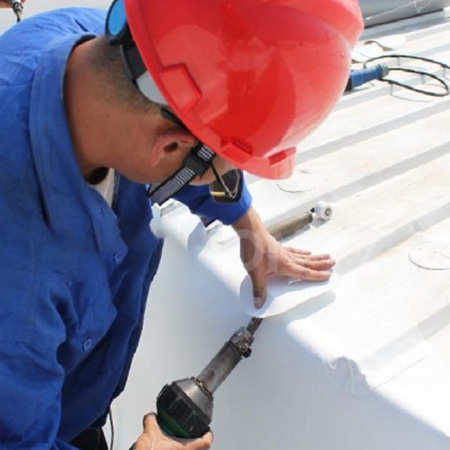 TPO/PVC鋼塑復合防水瓦以鋼板為基板,表面貼覆具有防水防腐功能的TPO/PVC卷材(熱塑性聚烯烴類防水卷材),是一款防水防腐屋面建筑材料。TPO/PVC鋼塑復合防水瓦主要特點就是在各類環境下不易生銹不易漏水,使用熱風焊接進行相連,覆蓋全部裸露的縫隙,在使用過程中可以達到蓄水不滲透的效果,防水效果好,同時還有較好的抗風揭性能和耐老化性