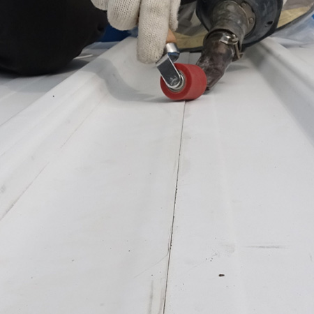 TPO/PVC鋼塑復合防水瓦以鋼板為基板,表面貼覆具有防水防腐功能的TPO/PVC卷材(熱塑性聚烯烴類防水卷材),是一款防水防腐屋面建筑材料。TPO/PVC鋼塑復合防水瓦主要特點就是在各類環境下不易生銹不易漏水,使用熱風焊接進行相連,覆蓋全部裸露的縫隙,在使用過程中可以達到蓄水不滲透的效果,防水效果好,同時還有較好的抗風揭性能和耐老化性