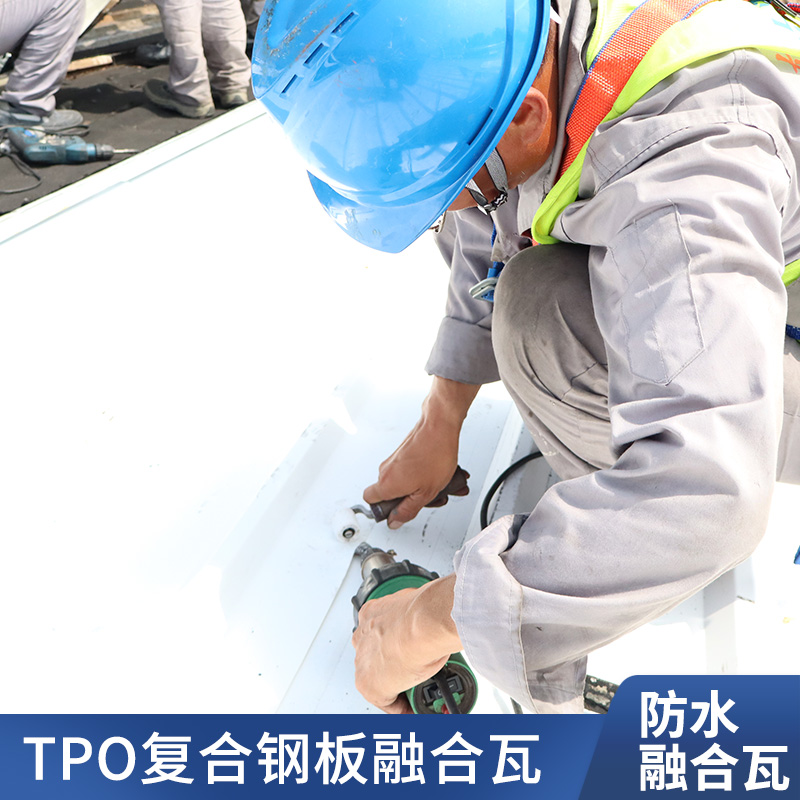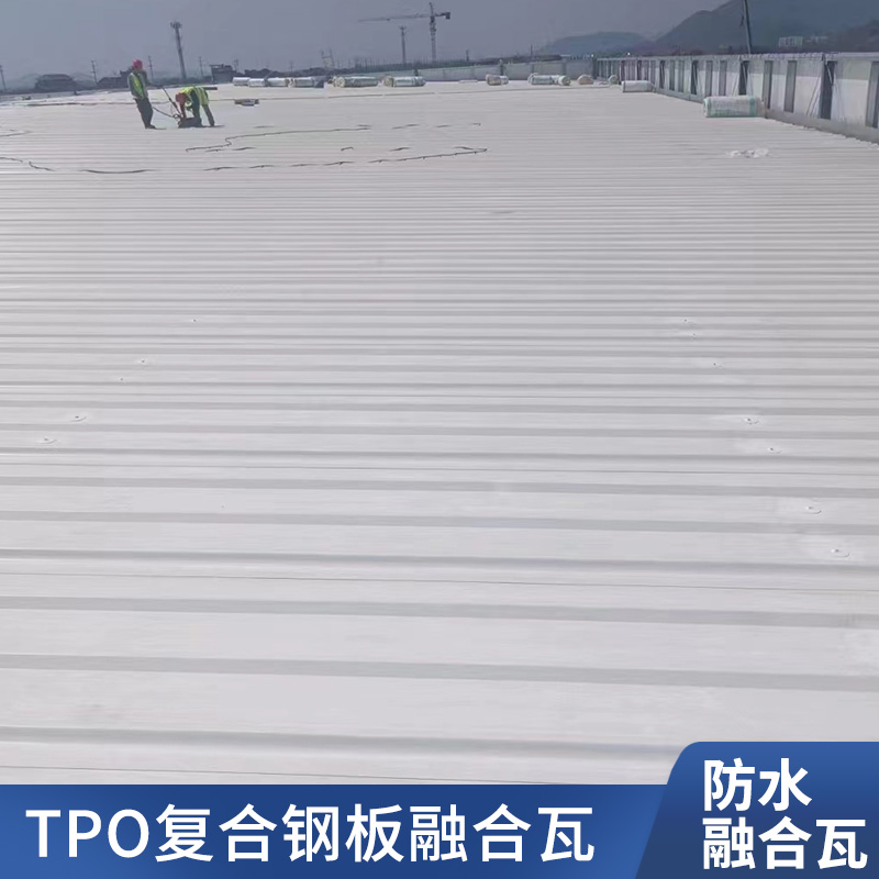TPO/PVC鋼塑復合防水瓦以鋼板為基板,表面貼覆具有防水防腐功能的TPO/PVC卷材(熱塑性聚烯烴類防水卷材),是一款防水防腐屋面建筑材料。TPO/PVC鋼塑復合防水瓦主要特點就是在各類環境下不易生銹不易漏水,使用熱風焊接進行相連,覆蓋全部裸露的縫隙,在使用過程中可以達到蓄水不滲透的效果,防水效果好,同時還有較好的抗風揭性能和耐老化性