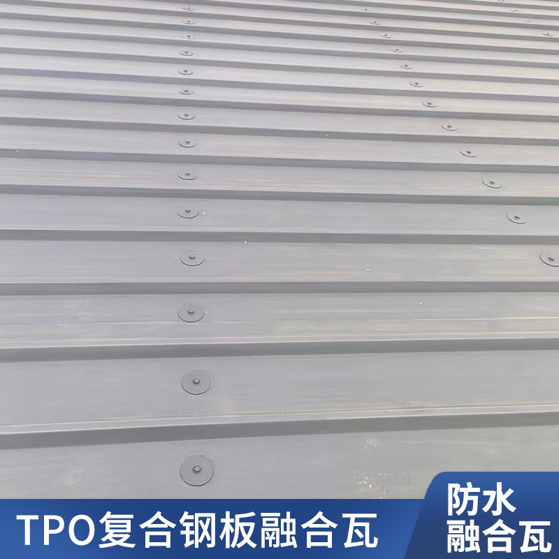 TPO/PVC鋼塑復合防水瓦以鋼板為基板,表面貼覆具有防水防腐功能的TPO/PVC卷材(熱塑性聚烯烴類防水卷材),是一款防水防腐屋面建筑材料。TPO/PVC鋼塑復合防水瓦主要特點就是在各類環境下不易生銹不易漏水,使用熱風焊接進行相連,覆蓋全部裸露的縫隙,在使用過程中可以達到蓄水不滲透的效果,防水效果好,同時還有較好的抗風揭性能和耐老化性