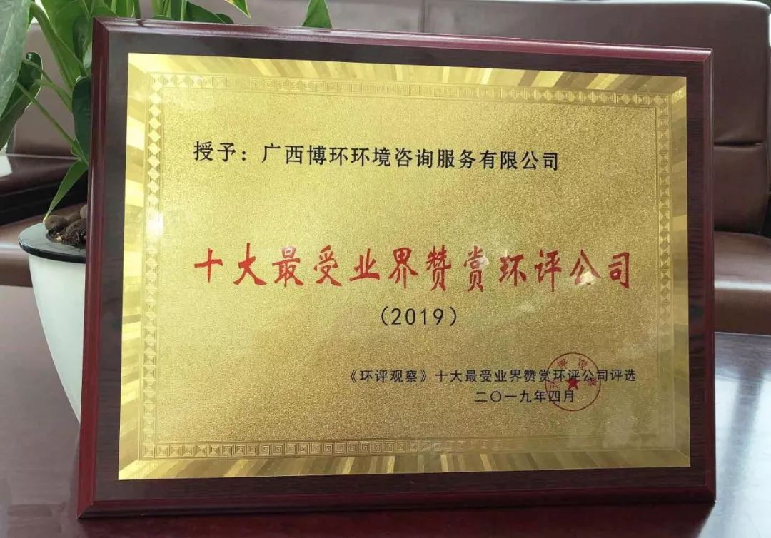 由“環評觀察”公眾號發起的“2019年十大最受業界贊賞環評公司”投票評選結果揭曉,博環連續兩年入選十佳,成為本年度最受業界贊賞的環評公司。